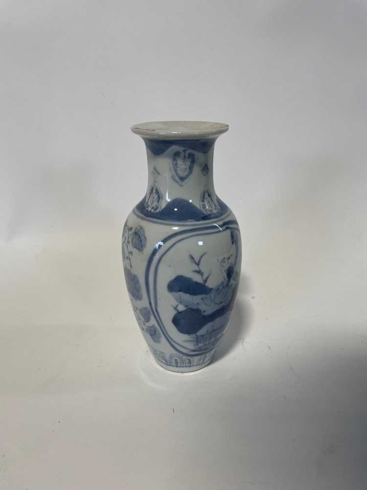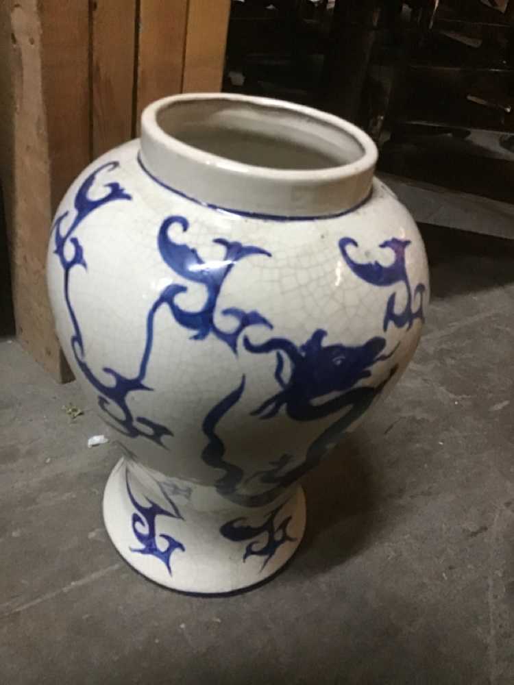 White Blue Ceramic Vase With Asian Design