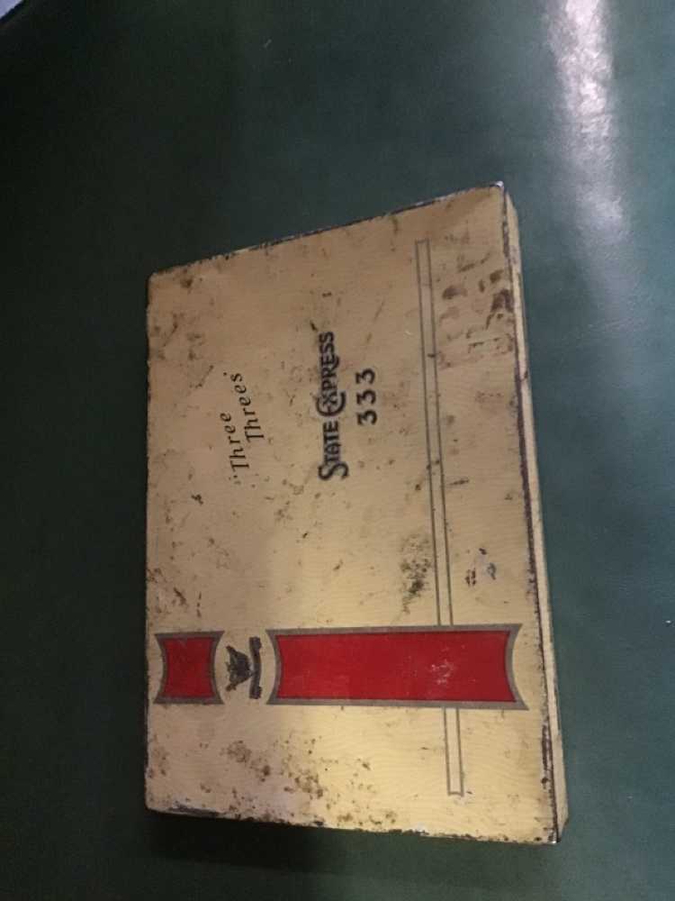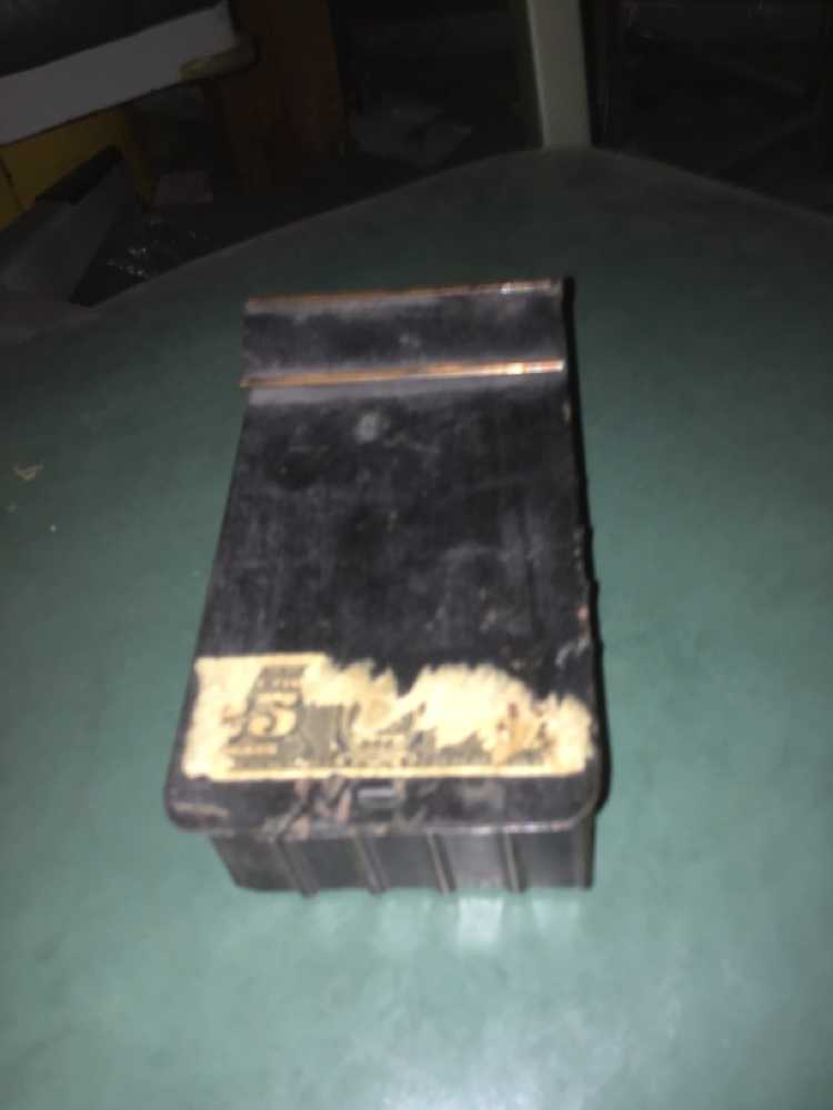 Brown Wood Cigar Humidor With Beige Black Trim And Brass Gauge