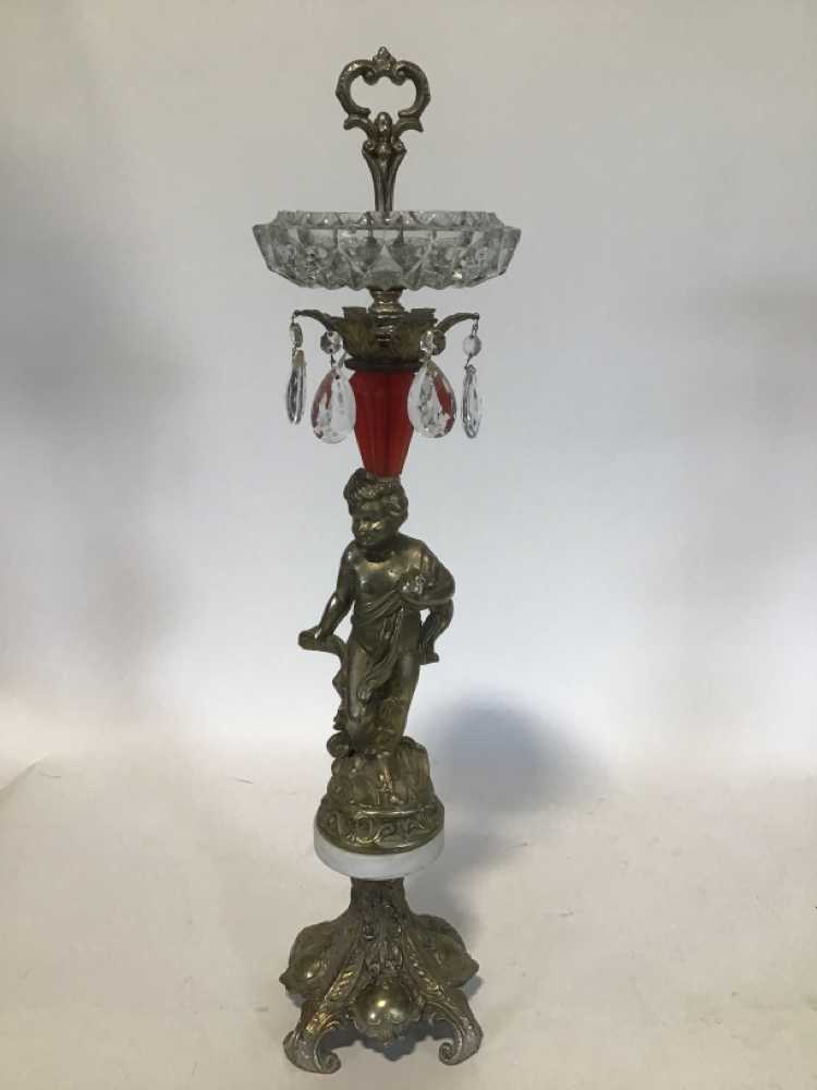 Antique Ornate Standing Ashtray With Cherub Figure On Base