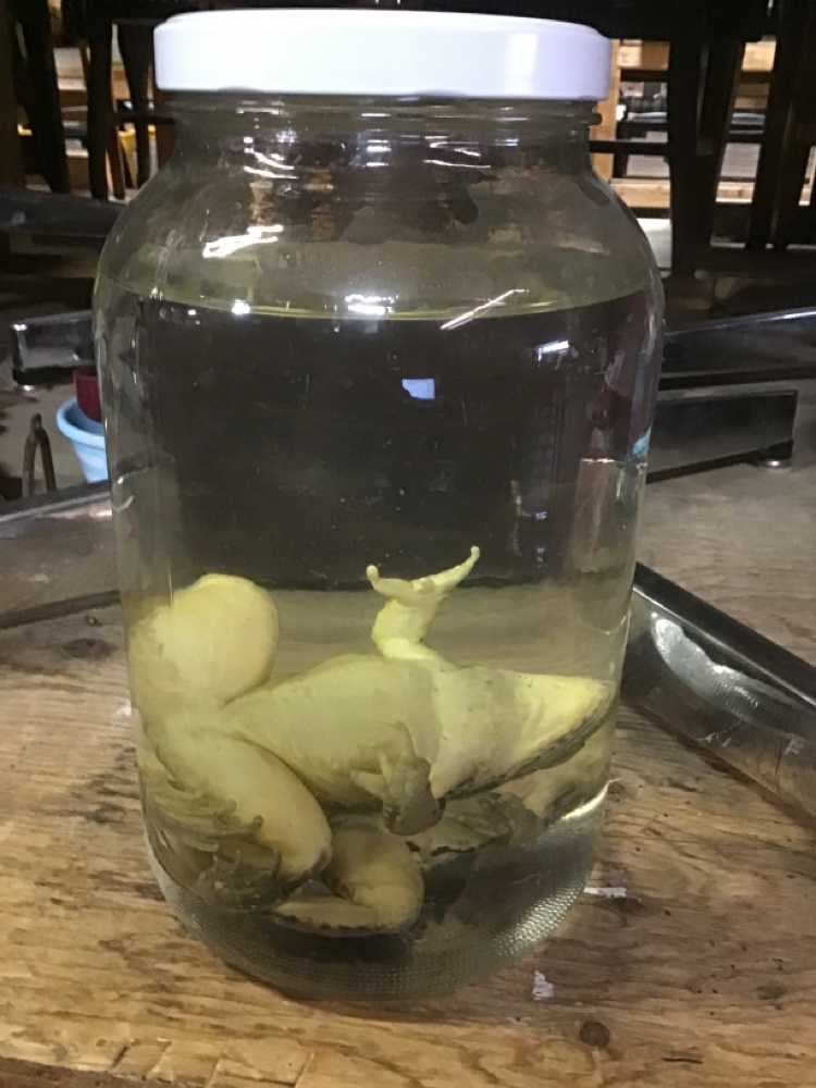 Clear Glass Specimen Jar With Frogs