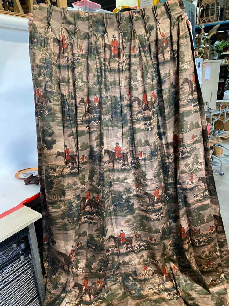 Blue / Yellow Pinstripe On Green Curtain Panel