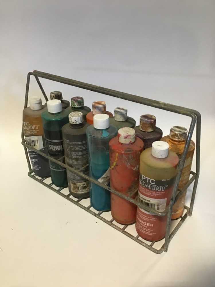 / Metal Paint Carrier With 12 Bottles Of Paint