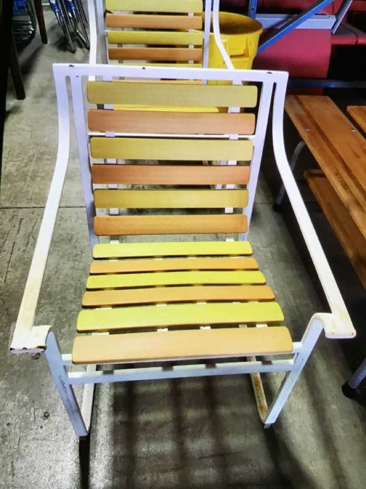 Vintage Patio Chair – Yellow Orange Striped Slotted Seat