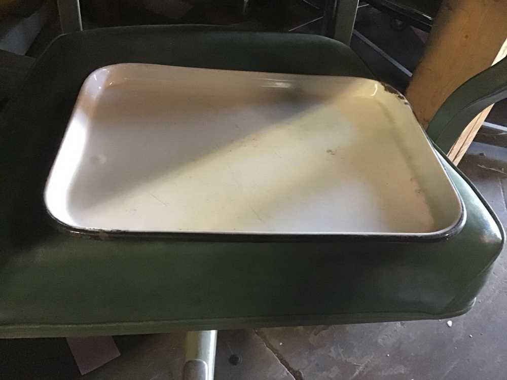 White Enamel Hospital Tray With Black Trim